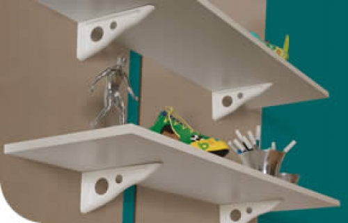 Prateleira em aglomerado com suporte aparente.